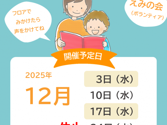 どんな絵本があるの? この本よんで! フロアで見かけたら、気軽に声をかけてくださいね。 ※12月17日 追記※ 12月24日(水)開催予定の『となり de えほん』は都合により休止いたします。 みなさまには大変ご迷惑をお […]