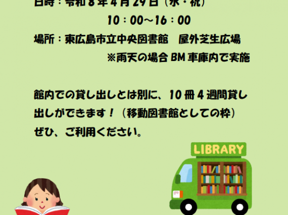 ※事前申し込みは不要です。直接会場へお越しください。 ※なずな文庫とピーターパンクラブのおはなし会の会場は図書館ではありませんのでご注意ください。 会場:黒瀬児童館 図書室 (東広島市黒瀬町丸山1450-1) ※黒 […]
