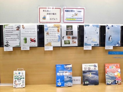 福富小学校6年生 外国語科4名によるポスター作品を展示しています。