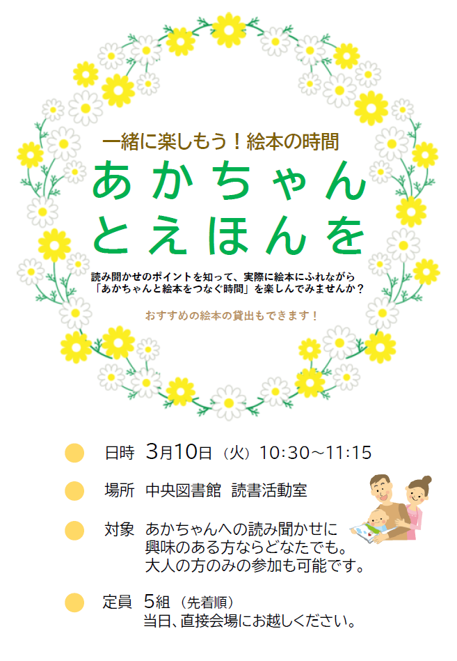 読み聞かせのポイントを知って、実際に絵本に触れながら「あかちゃんと絵本をつなぐ時間」を楽しんでみませんか?