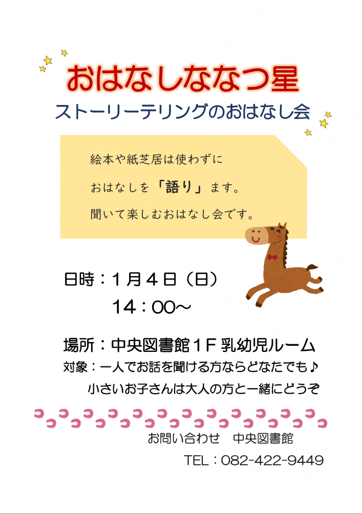 対象/定員 対象:一人でお話を聞くことができる方 (小さなお子様は保護者の方同伴)