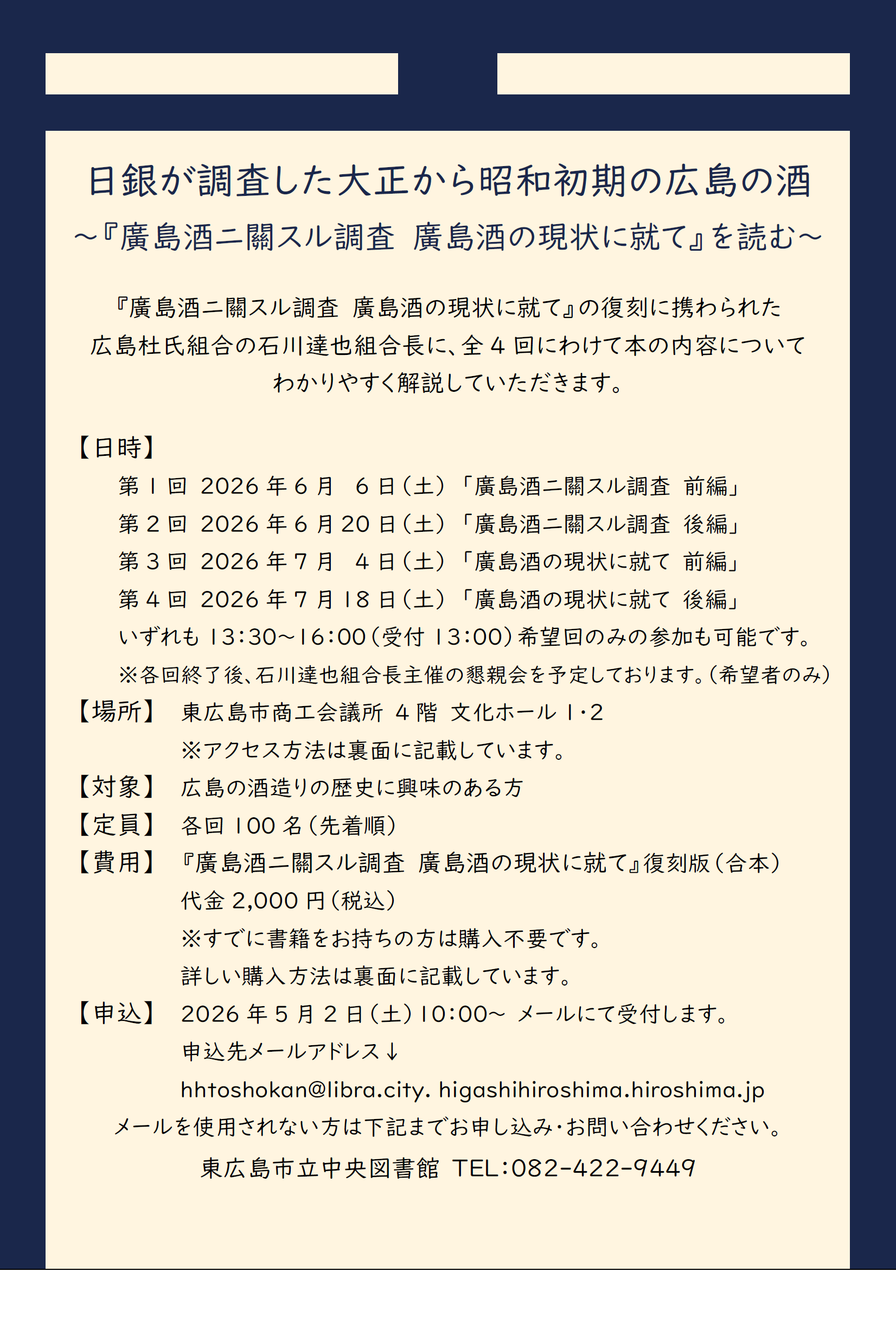 ~『廣島酒ニ關スル調査 廣島酒の現状に就て』を読む~(全4回) 6月6日(土)