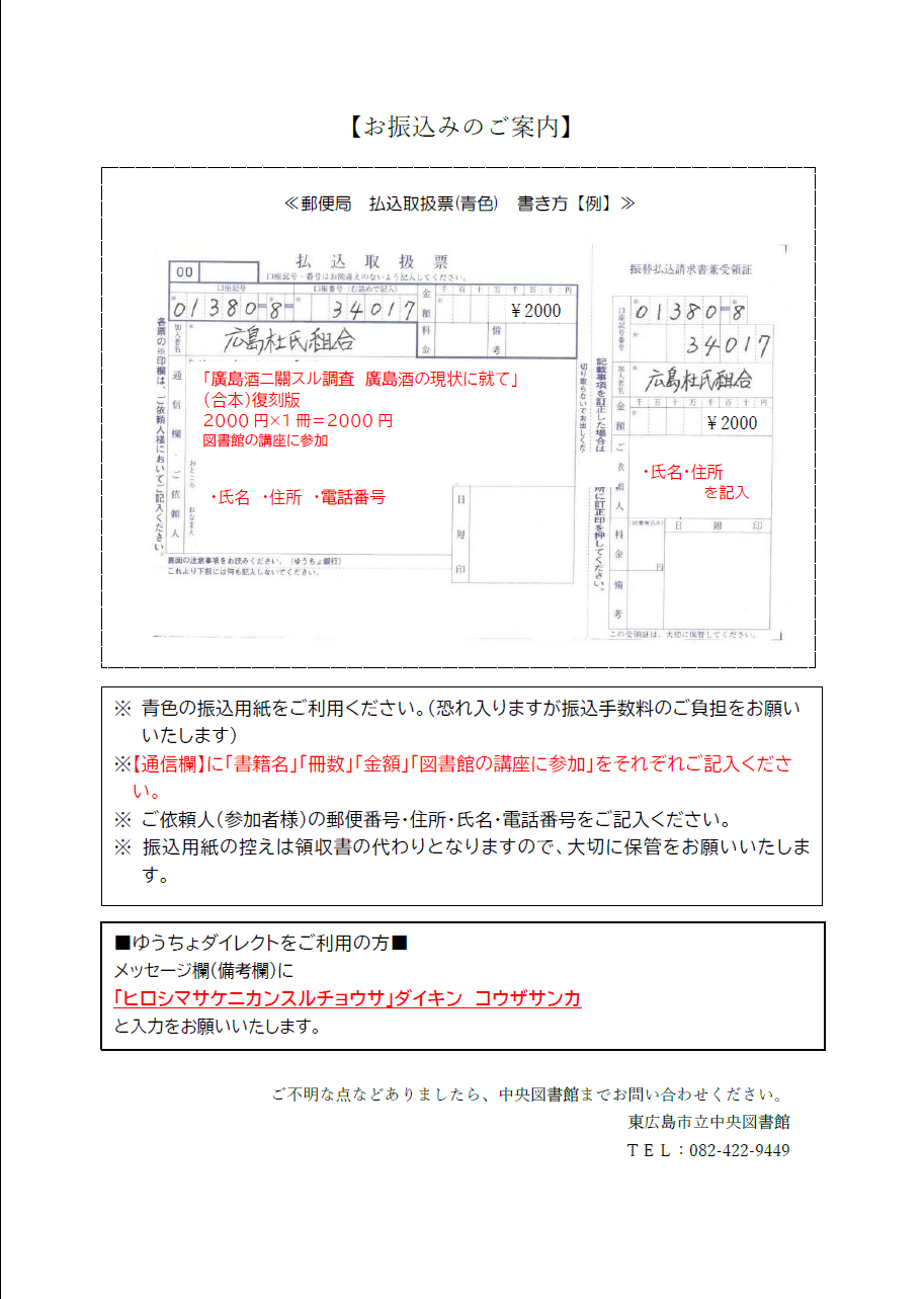 参加費 『廣島酒ニ關スル調査 廣島酒の現状に就て』復刻版(合本) 購入代金 2,000円