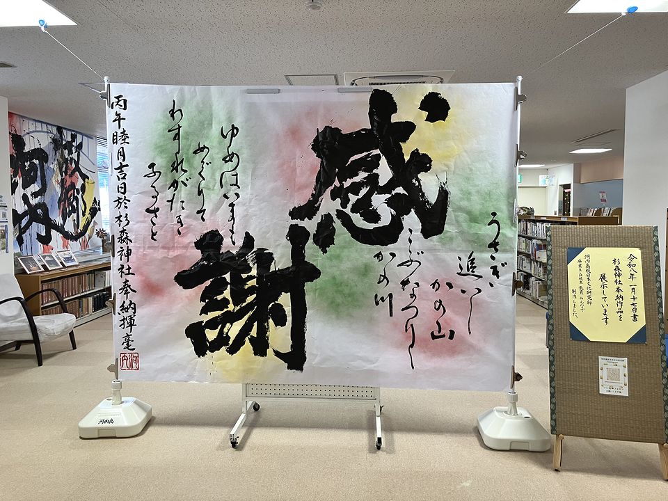 こちらは2026年1月17日(土)に、河内町の杉森神社で行われた書道パフォーマンスで制作された作品です。