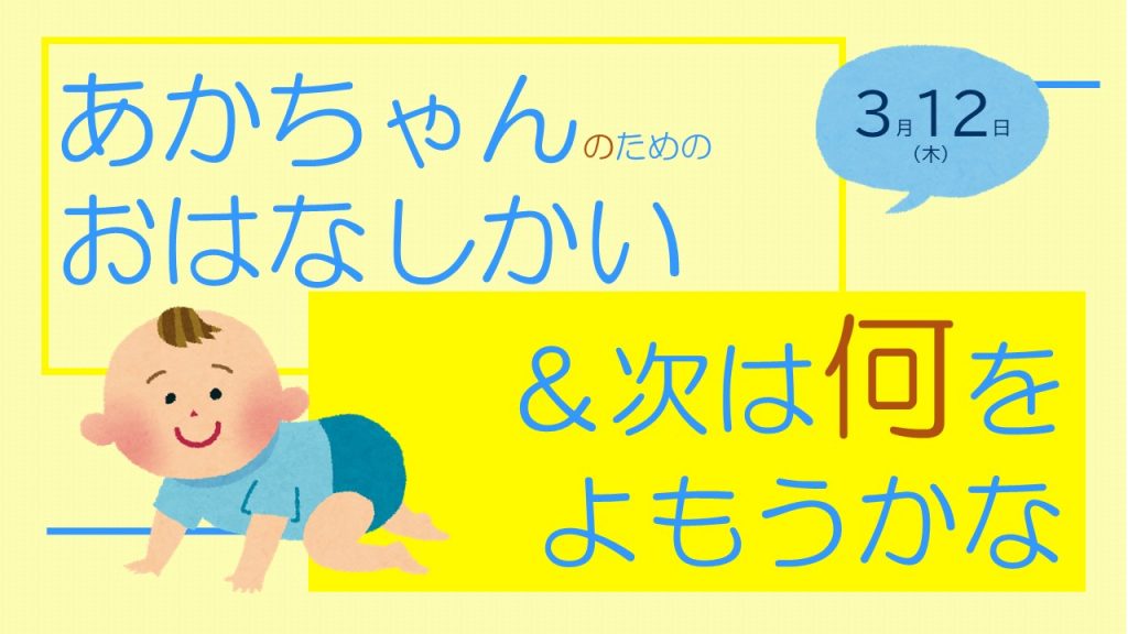 あかちゃんのためのおはなしかい&次は何をよもうかな 3/12(木)
