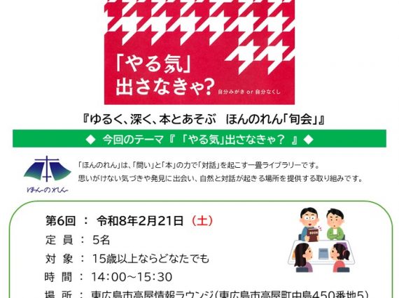 ほんのれんは、「問い」と「本」の力で「対話」を起こす一畳ライブラリーです。 ゆるく、深く、本とあそぶ ほんのれん旬会です。 今回のテーマは『「やる気」出さなきゃ?』です。