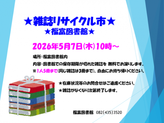 書庫や移動図書館車など、普段見ることができない図書館の“ウラ側”を探検しましょう。 ※当日13:40から1階カウンターで整理券を配布しますので、直接お越しください。 ポスター(PDF)